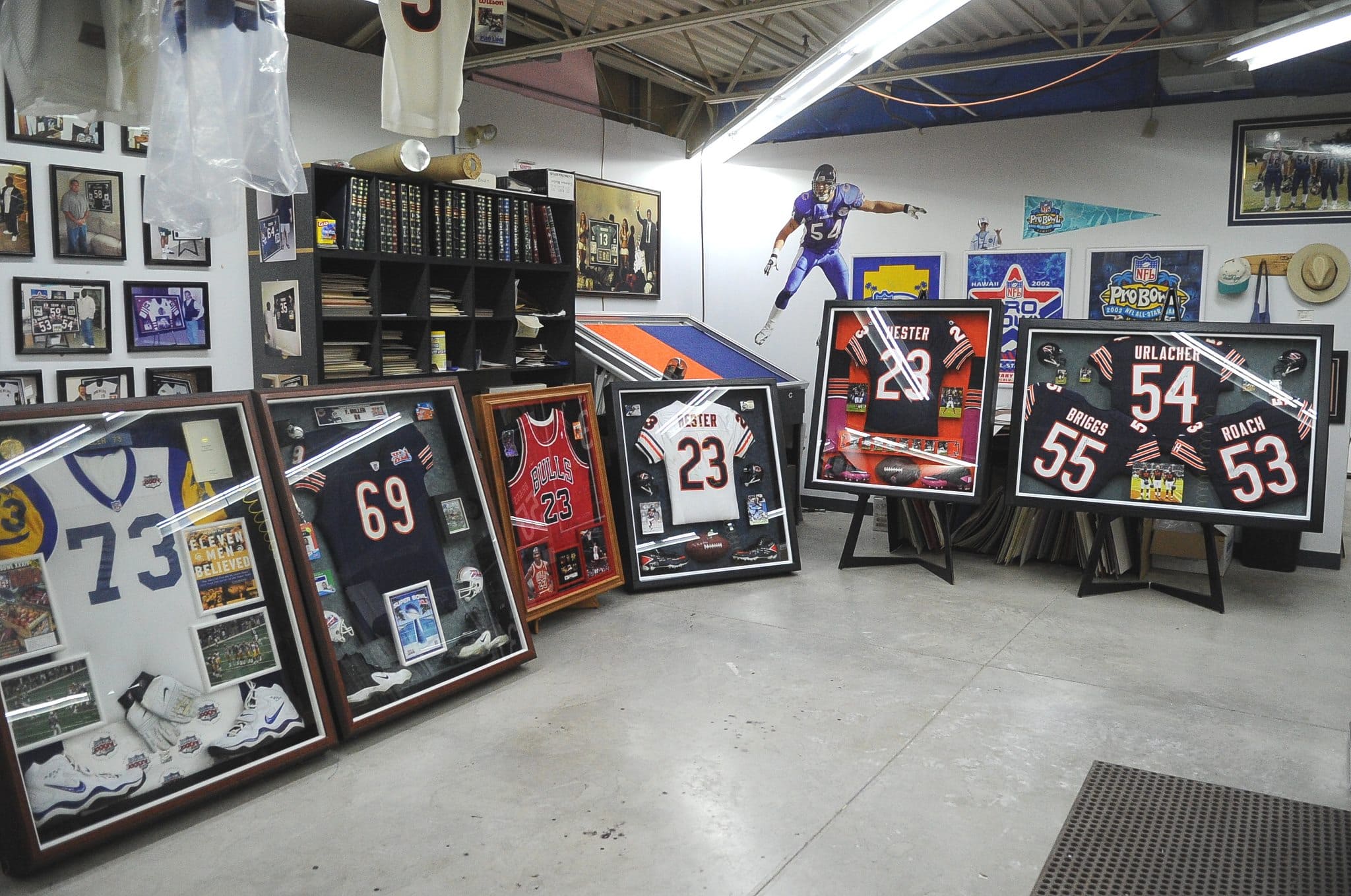 Having landed a handful of Chicago Bears players, Scott realized he couldn’t be bringing these paying customers into his garage. Luckily, his friend was opening a t-shirt factory in Waukegan, IL and offered to rent out the upstairs mezzanine to Scott. Thus ProCase Sports frame shop was born in the upstairs of American Outfitters Ltd. where it is still located today.